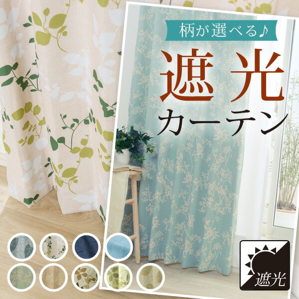 遮光カーテン 柄が選べる 2枚組 在庫品 幅100×丈135 178 200【カーテン 遮光 1級 2級 厚地カーテン 北欧柄 リーフ かわいい 花柄 おしゃれ】【お買い物マラソン】