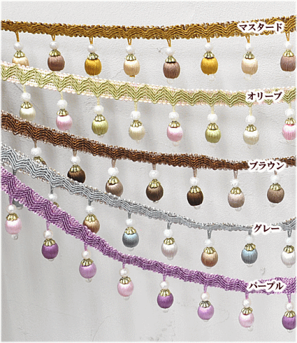 玉付きボールフリンジ全5色カーテン、テーブルクロス、クッションなどインテリア関係に最適なフリンジ。
