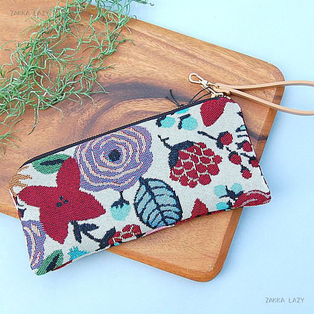 「enrich 横長フラットポーチ ストラップ付き ブロッサム」 コスメ道具 ステーショナリー 小物入れ 花柄 フラット ポーチ 花モチーフ 横長【ネコポス・コンパクト対応】
